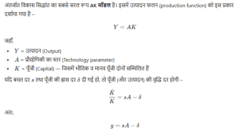 • इन मॉडलों में तकनीकी प्रगति और उत्पादकता वृद्धि को “आंतरिक” माना गया है, अर्थात् यह स्वयं आर्थिक निर्णयों का परिणाम है।